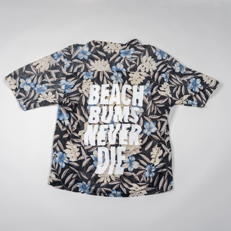 Every aloha shirt is 1 of 1 and will be blasted with the BBND logo.